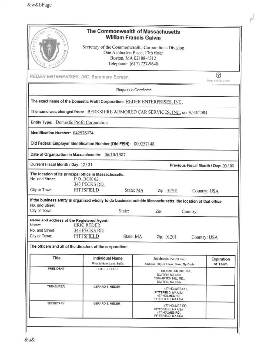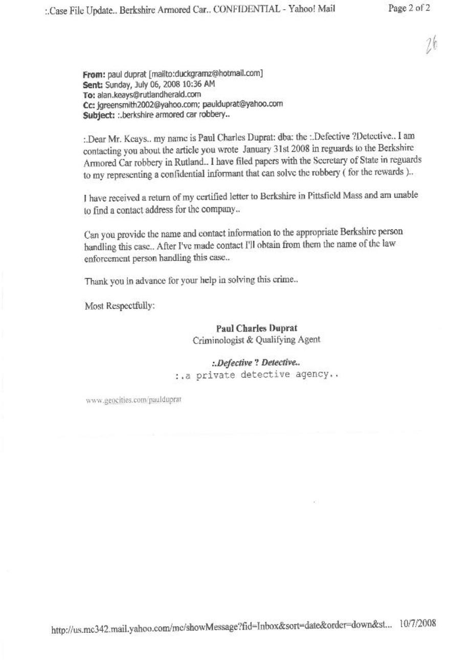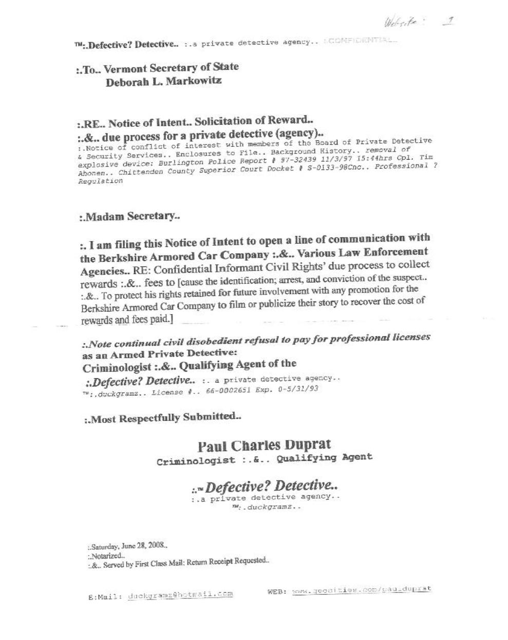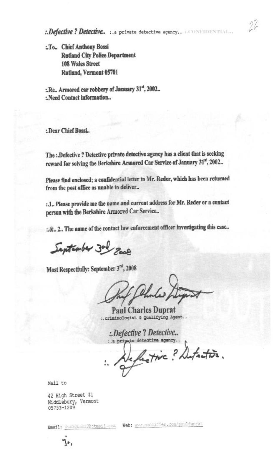 :.The Berkshire Armored Car Robbery.. :.January 31st, 2002.. :.The Largest Armed Robbery In Vermont History.. :.This page documents the efforts to Notify the Victim that Intel is available to solve this crime, and demand the Confidential Informant be paid the REWARD Offered.. |