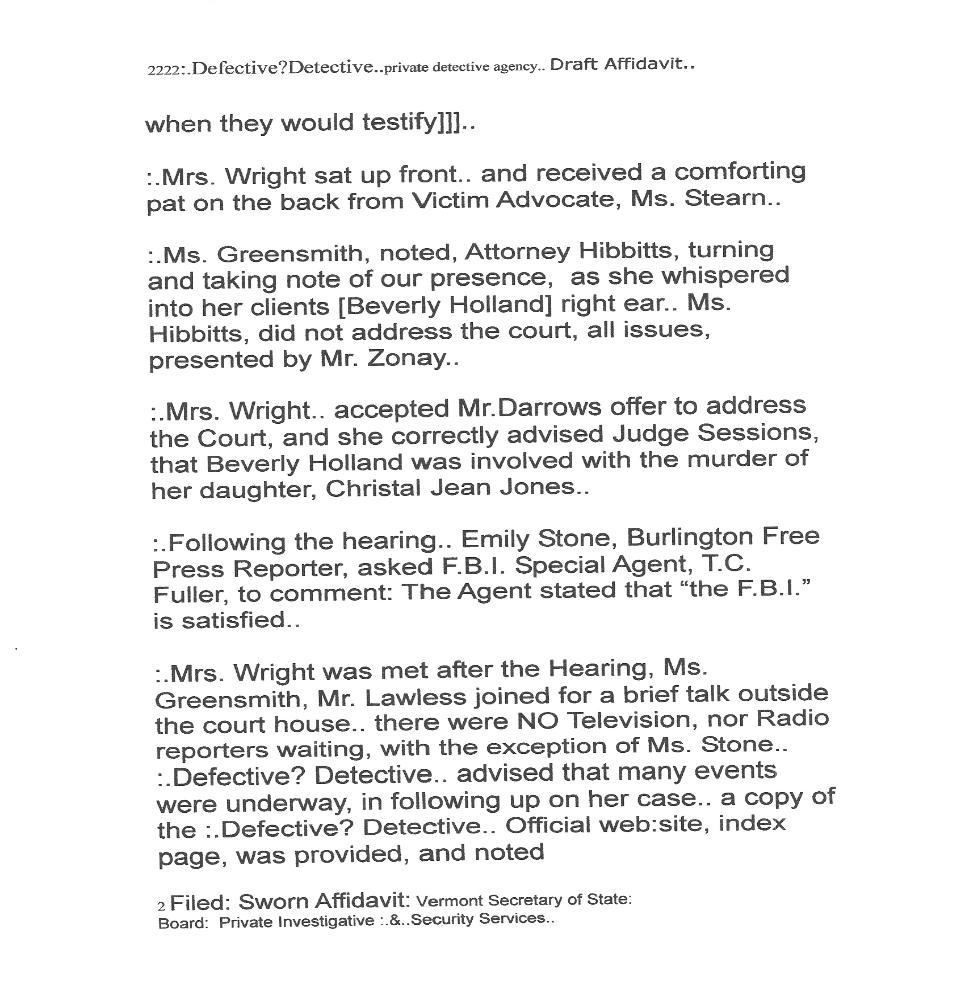 :.duckgramz.. any person; that can expose the truth about the financial services industry; or about, heroin, homicide, interstate gang narcotics activity, is subject to the same "political' pressure, to shut up, or else.. and some people believe, that "black listing", has ended.. best think again.. the press certainly play a major role in preventing reality from see the light of day.. below are notes of the homicide of Christal Jean Jones.. |