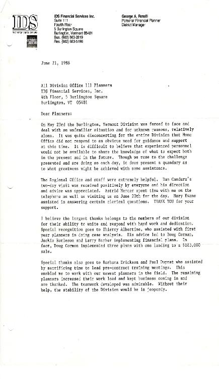 IDS/AMEX and the state of Vermont