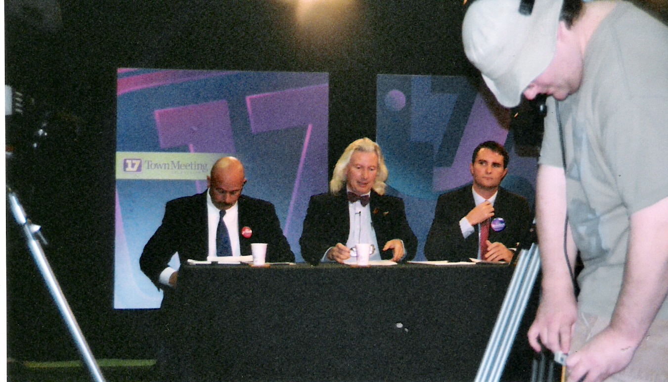 | :.photographer.. Ms. Judy Greensmith..Below T.J.Donovan & the Defective? Detective at the Seniors Public Forum.. Above.. @ Channel 17 Debate:(R)John St.Francis,Esq. the :.Defective ?Detective center, and (D)T.J.Donovan, Right in photograph.. and top photo, while playing Chess in City Hall Park.. |