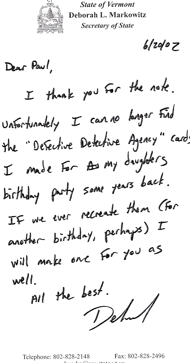 | Letters to Vermont Governor: of course never a response to the issues.. |